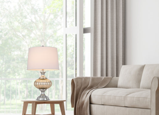 Nickel Glass Round Table Lamp With White Empire... Nickel Glass Round Table Lamp With White Empire Shade By Homeroots