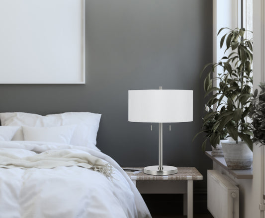 Nickel Metal Round Table Lamp With White Drum S... Nickel Metal Round Table Lamp With White Drum Shade By Homeroots