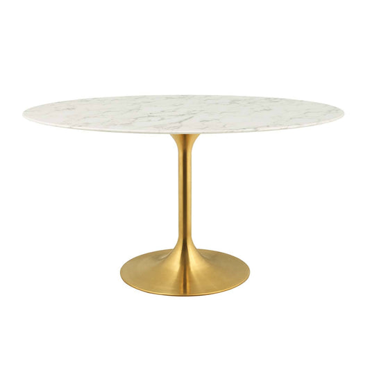 Modway Lippa 60" Oval Artificial Marble Dining ... Modway Lippa 60" Oval Artificial Marble Dining Table in Gold White - EEI-3236