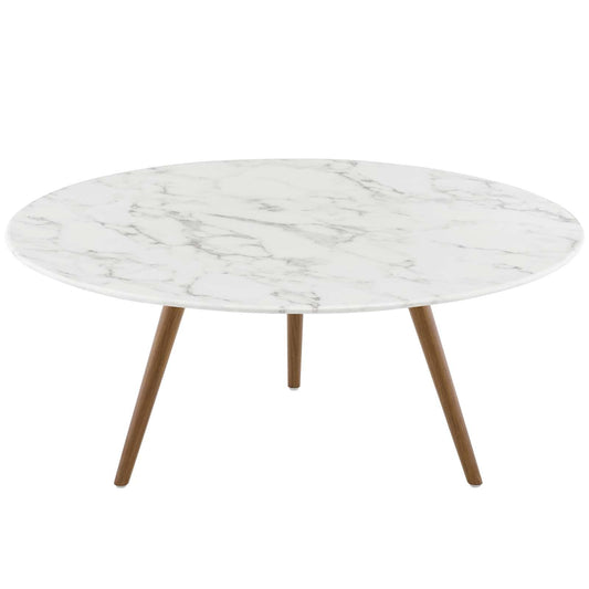 Modway Lippa 40" Round Wood Top Coffee Table wi... Modway Lippa 40" Round Wood Top Coffee Table with Tripod Base in Walnut White - EEI-3666
