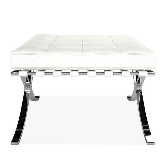 White Genuine Leather and Silver Tufted Footsto... White Genuine Leather and Silver Tufted Footstool Ottoman By Homeroots
