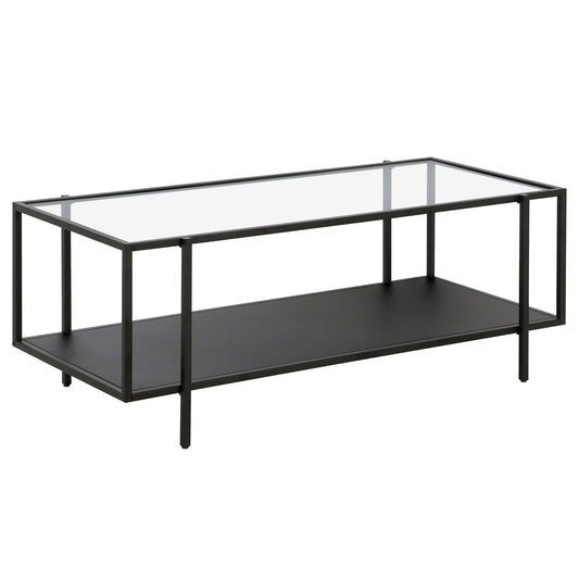 Clear And Black Glass And Steel Coffee Table Wi... Clear And Black Glass And Steel Coffee Table With Shelf By Homeroots
