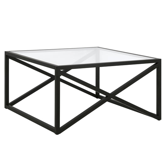 Black Glass And Steel Square Coffee Table By Ho... Black Glass And Steel Square Coffee Table By Homeroots