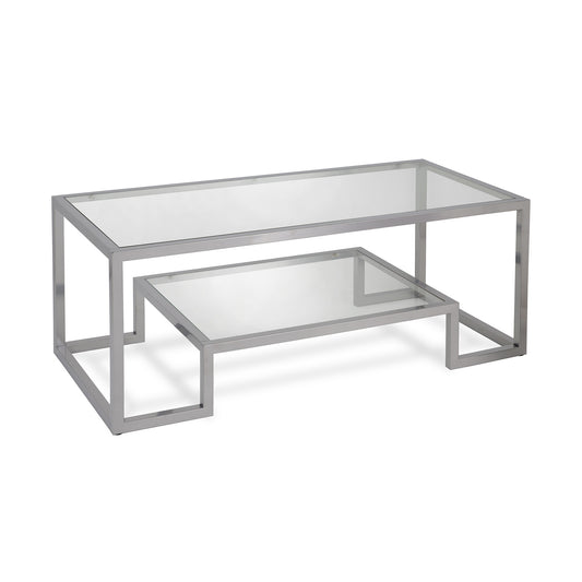 Silver Glass And Steel Coffee Table With Shelf ... Silver Glass And Steel Coffee Table With Shelf By Homeroots
