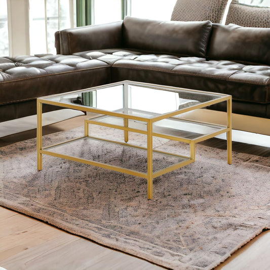 Gold Glass And Steel Coffee Table With Two Shel... Gold Glass And Steel Coffee Table With Two Shelves By Homeroots