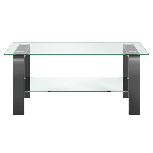 Gray Glass And Steel Coffee Table With Shelf By... Gray Glass And Steel Coffee Table With Shelf By Homeroots