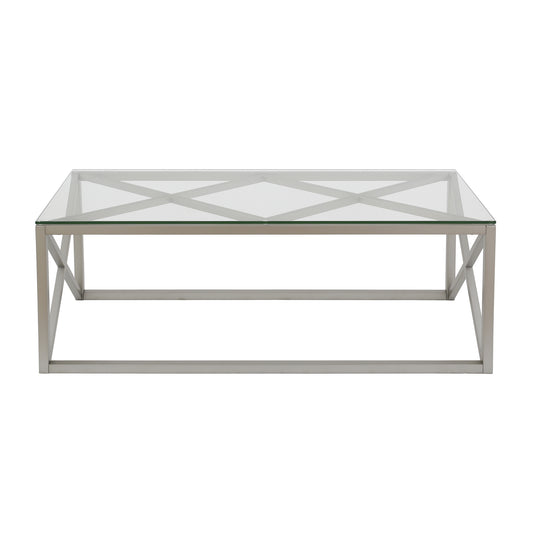 Silver Glass And Steel Coffee Table By Homeroots Silver Glass And Steel Coffee Table By Homeroots