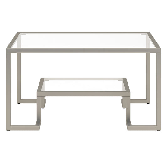 Silver Glass And Steel Square Coffee Table With... Silver Glass And Steel Square Coffee Table With Shelf By Homeroots