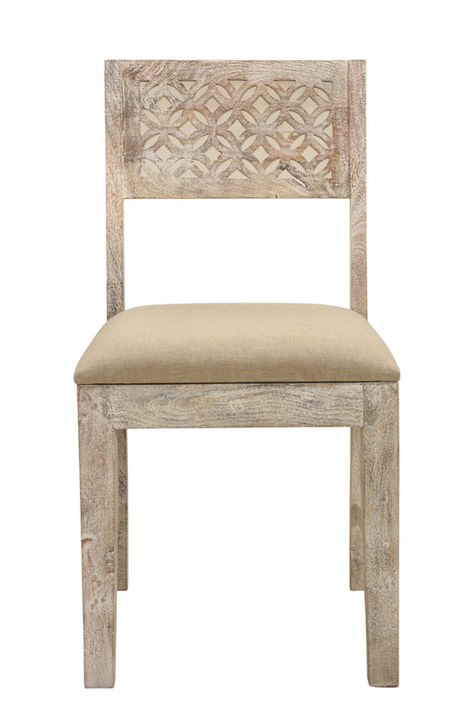Set of Two Brown And White Upholstered Fabric C... Set of Two Brown And White Upholstered Fabric Carved Back Dining Side Chairs By Homeroots