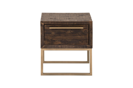 Antiqued Brass And Brown Reclaimed Wood End Tab... Antiqued Brass And Brown Reclaimed Wood End Table With Drawer By Homeroots