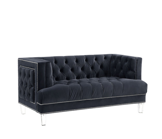 51" Gray Tufted Velvet And Gray Love Seat By Ho... 51" Gray Tufted Velvet And Gray Love Seat By Homeroots