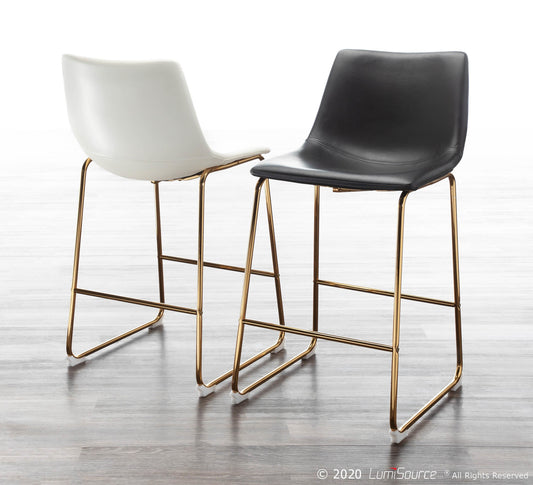 Duke Counter Stool - Set of 2 by LumiSource Pro... Duke Counter Stool - Set of 2 by LumiSource Product Gold Metal, Black PU Leather, Foam, Painted Steel Contemporary Styling Fixed Counter Height Sleek Gold Metal Frame