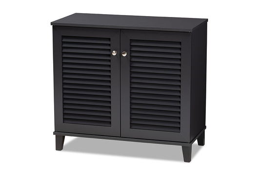 Baxton Studio Shirley Modern and Contemporary D... Baxton Studio Shirley Modern and Contemporary Dark Grey Finished 2-Door Wood Shoe Storage Cabinet with Open Shelves