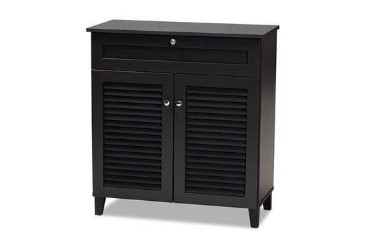 Baxton Studio Coolidge Modern and Contemporary ... Baxton Studio Coolidge Modern and Contemporary Dark Grey Finished 4-Shelf Wood Shoe Storage Cabinet with Drawer