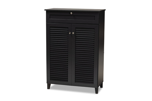 Baxton Studio Coolidge Modern and Contemporary ... Baxton Studio Coolidge Modern and Contemporary Dark Grey Finished 5-Shelf Wood Shoe Storage Cabinet with Drawer