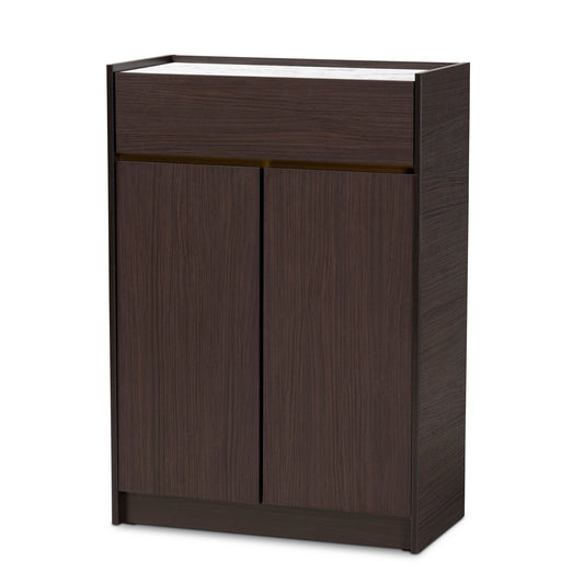 Baxton Studio Walker Modern and Contemporary Da... Baxton Studio Walker Modern and Contemporary Dark Brown and Gold Finished Wood Shoe Cabinet with Faux Marble Top