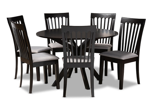 Baxton Studio Minette Modern and Contemporary G... Baxton Studio Minette Modern and Contemporary Gray Fabric Upholstered and Espresso Brown Finished Wood 7-Piece Dining Set