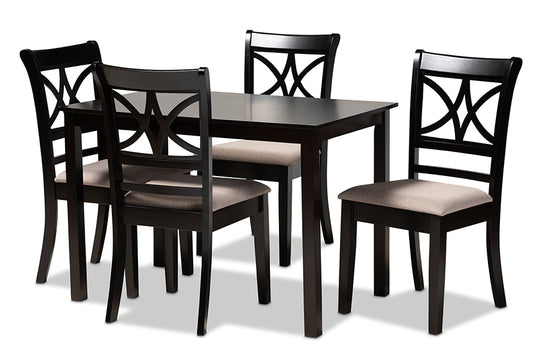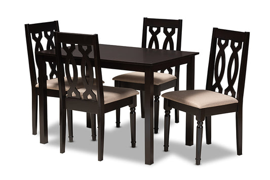 Baxton Studio Renaud Modern and Contemporary Sa... Baxton Studio Renaud Modern and Contemporary Sand Fabric Upholstered Espresso Brown Finished 5-Piece Wood Dining Set