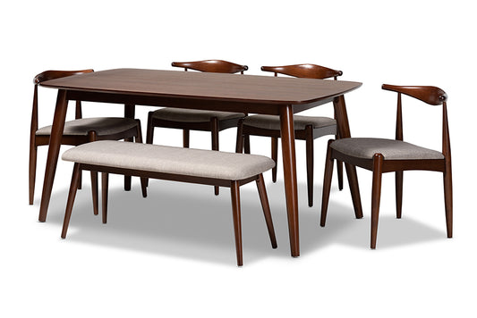 Baxton Studio Aeron Mid-Century Modern Light Gr... Baxton Studio Aeron Mid-Century Modern Light Gray Fabric Upholstered Walnut Finished Wood 6-Piece Dining Set
