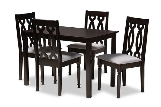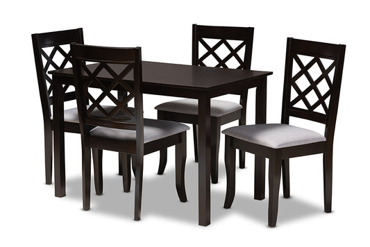 Baxton Studio Renaud Modern and Contemporary Gr... Baxton Studio Renaud Modern and Contemporary Grey Fabric Upholstered Espresso Brown Finished 5-Piece Wood Dining Set