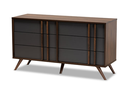 Baxton Studio Naoki Modern and Contemporary Two... Baxton Studio Naoki Modern and Contemporary Two-Tone Grey and Walnut Finished Wood 6-Drawer Bedroom Dresser