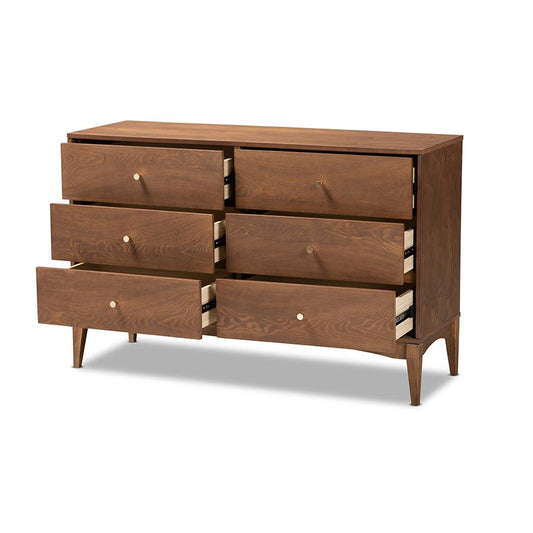 Baxton Studio Landis Mid-Century Modern Ash Wal... Baxton Studio Landis Mid-Century Modern Ash Walnut Finished Wood 6-Drawer Dresser