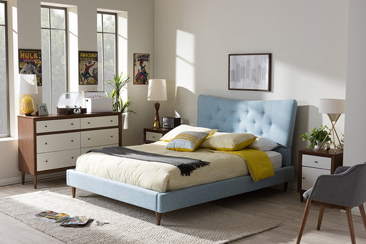 Baxton Studio Hannah Mid-Century Modern Sky Blu... Baxton Studio Hannah Mid-Century Modern Sky Blue Fabric Queen Size Platform Bed