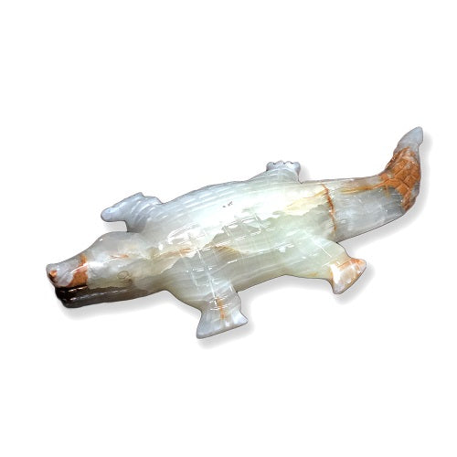 Sold outWhite Onyx Crocodile Figurine- 12" White Onyx Crocodile Figurine- 12"