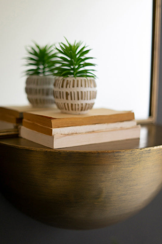 Antique Brass Metal Framed Mirror With Demi-Lun... Antique Brass Metal Framed Mirror With Demi-Lune Shelf By Kalalou
