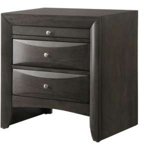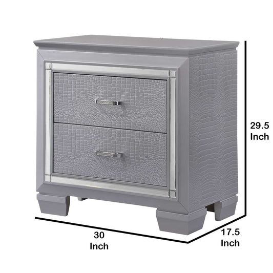 Two Drawer Wooden Nightstand With Textured Deta... Two Drawer Wooden Nightstand With Textured Details And Mirror Accents, Gray By Benzara