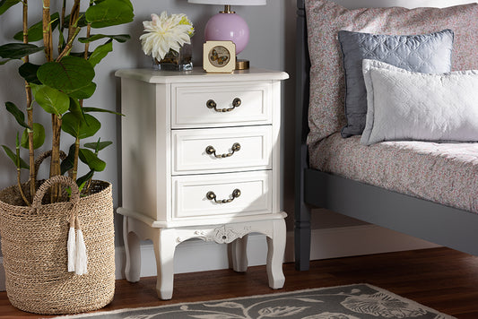 Baxton Studio Gabrielle Traditional French Coun... Baxton Studio Gabrielle Traditional French Country Provincial White-Finished 3-Drawer Wood Nightstand