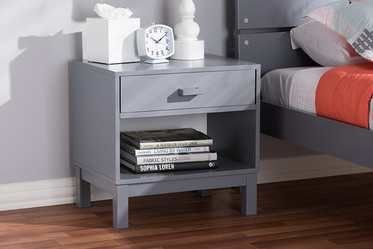 Baxton Studio Deirdre Modern and Contemporary G... Baxton Studio Deirdre Modern and Contemporary Grey Wood 1-Drawer Nightstand