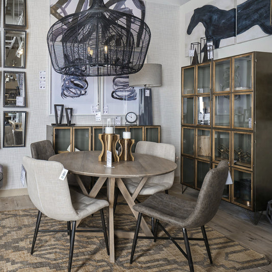 48" Round Dining Room Table With Black Reclaime... 48" Round Dining Room Table With Black Reclaimed Wood And Black Metal By Homeroots