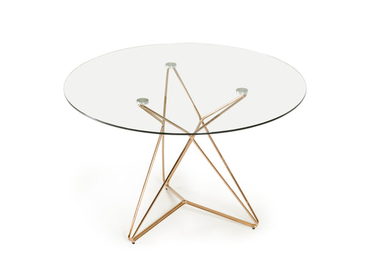 Polished Gold Glass Stainless Steel Dining Tabl... Polished Gold Glass Stainless Steel Dining Table By Homeroots