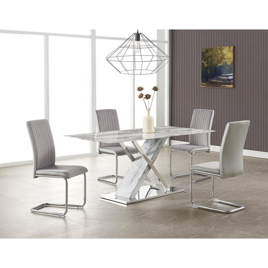 Elegant Marble Glass Top Dining Table With X Ba... Elegant Marble Glass Top Dining Table With X Base Stainless Steel Accents By Homeroots