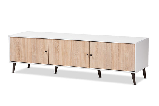 Baxton Studio Meike Mid-Century Modern Two-Tone... Baxton Studio Meike Mid-Century Modern Two-Tone Walnut Brown and White Finished Wood TV Stand