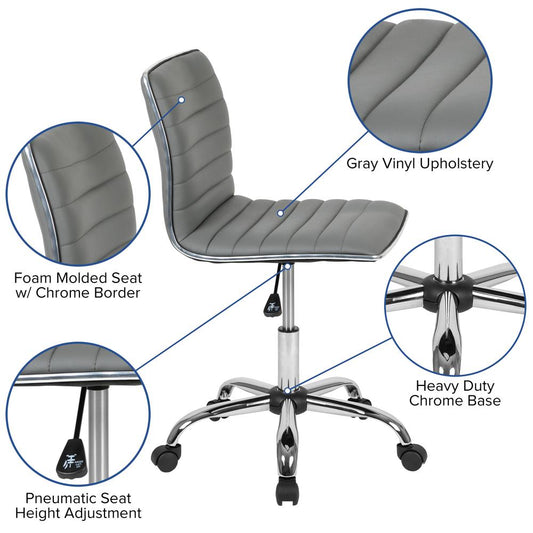 Low Back Designer Armless Light Gray Ribbed Swi... Low Back Designer Armless Light Gray Ribbed Swivel Task Office Chair By Flash Furniture