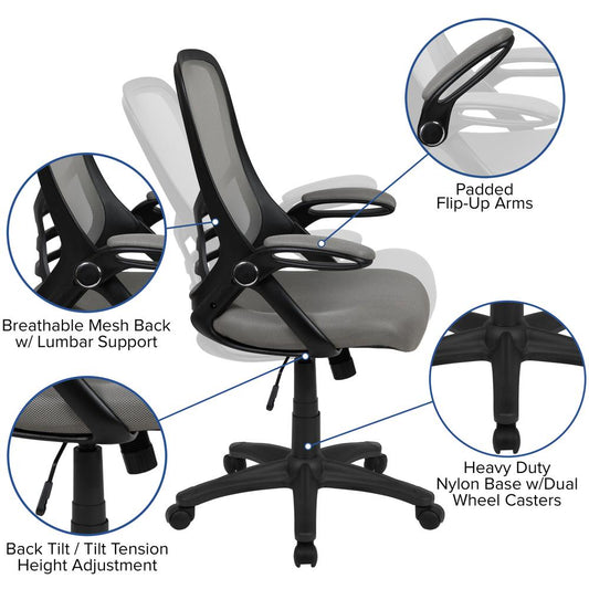 High Back Light Gray Mesh Ergonomic Swivel Offi... High Back Light Gray Mesh Ergonomic Swivel Office Chair With Black Frame And Flip-Up Arms By Flash Furniture
