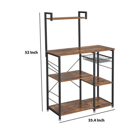 Wooden Utility Storage With 5 Shelves And Wire ... Wooden Utility Storage With 5 Shelves And Wire Basket, Brown And Black By Benzara