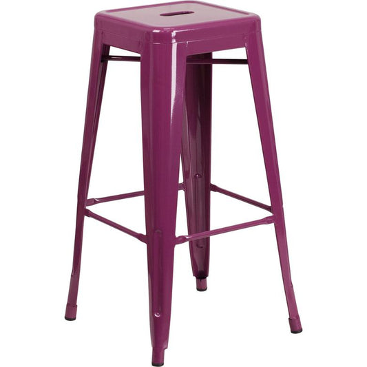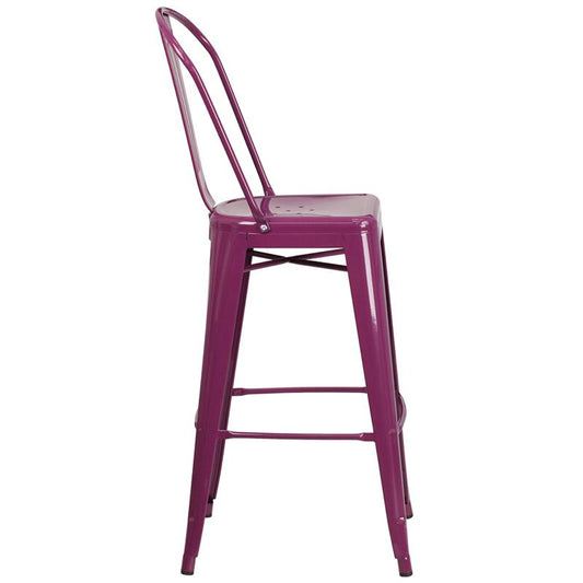 Commercial Grade 30" High Purple Metal Indoor-O... Commercial Grade 30" High Purple Metal Indoor-Outdoor Barstool With Back By Flash Furniture