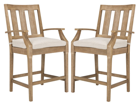 Wiglaf Outdoor Patio Counter Height Bar Stool i... Wiglaf Outdoor Patio Counter Height Bar Stool in Aluminum and Teak with Grey Cushions By Armen Living