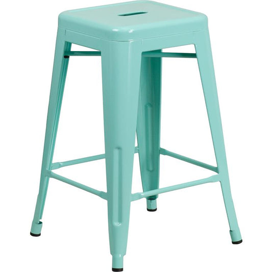 Commercial Grade 24" High Backless Mint Green I... Commercial Grade 24" High Backless Mint Green Indoor-Outdoor Counter Height Stool By Flash Furniture