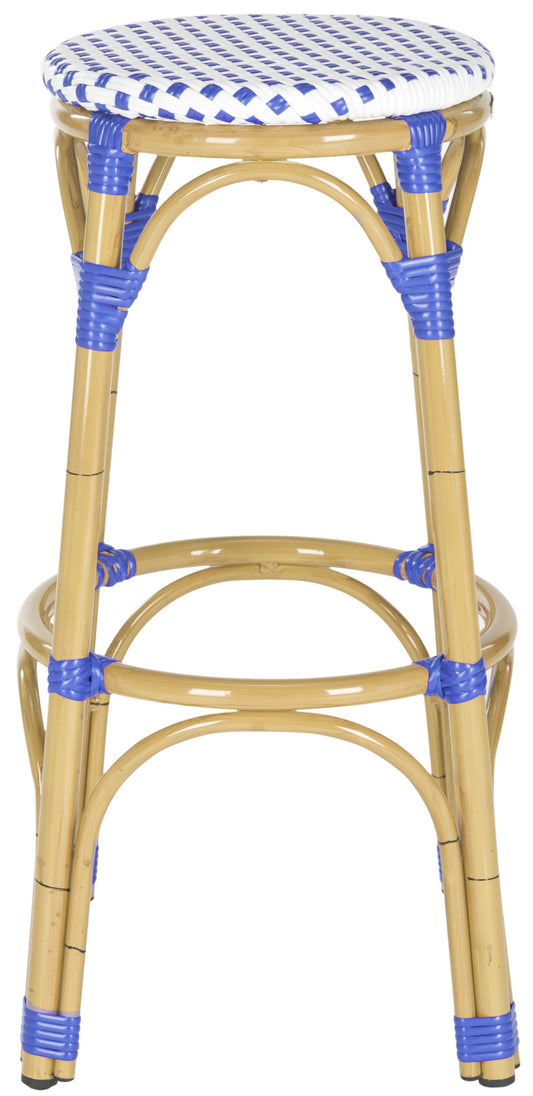 Baxton Studio Ilene Classic French Indoor and O... Baxton Studio Ilene Classic French Indoor and Outdoor White and Blue Bamboo Style Stackable Bistro Bar Stool