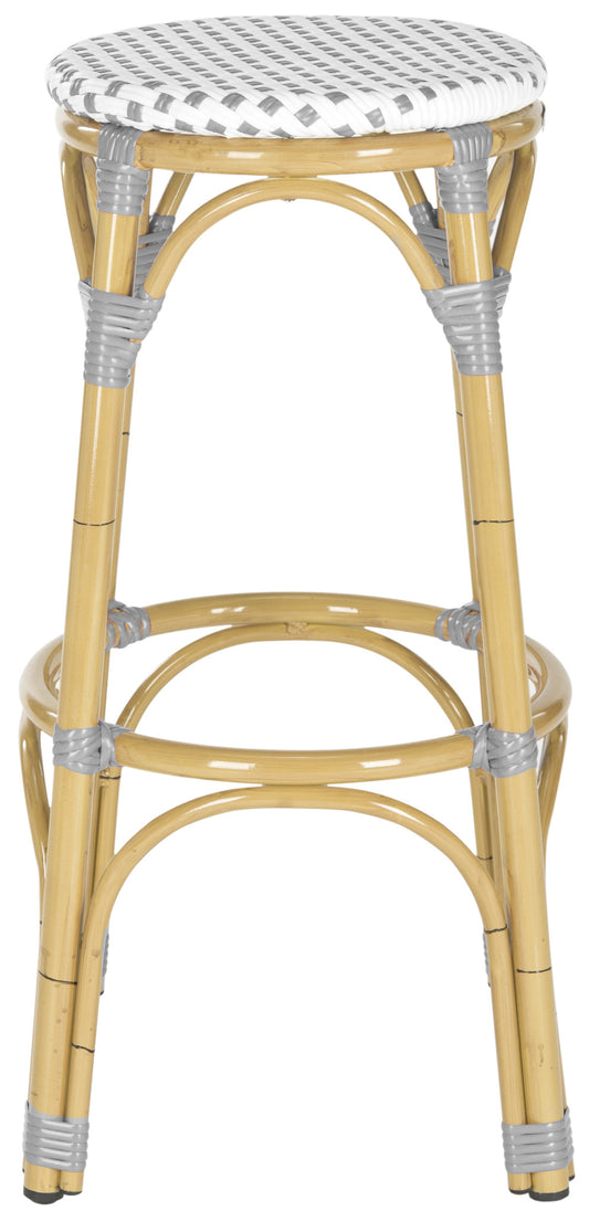 Baxton Studio Joelle Classic French Indoor and ... Baxton Studio Joelle Classic French Indoor and Outdoor Grey and White Bamboo Style Stackable Bistro Bar Stool