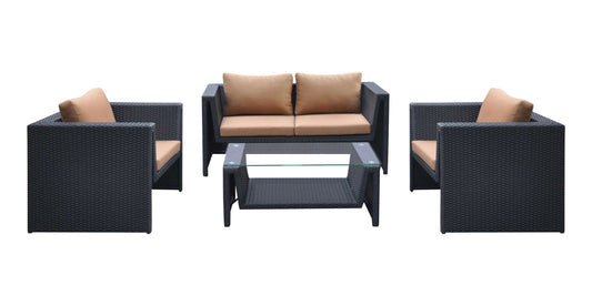 Oahu 4 piece Outdoor Wicker Patio Set with Brow... Oahu 4 piece Outdoor Wicker Patio Set with Brown Fabric Cushions and Temperated Glass Top By Armen Living