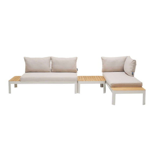 Portals Outdoor 4 Piece Sofa set in Matte Sand ... Portals Outdoor 4 Piece Sofa set in Matte Sand Finish with Natural Teak Wood By Armen Living