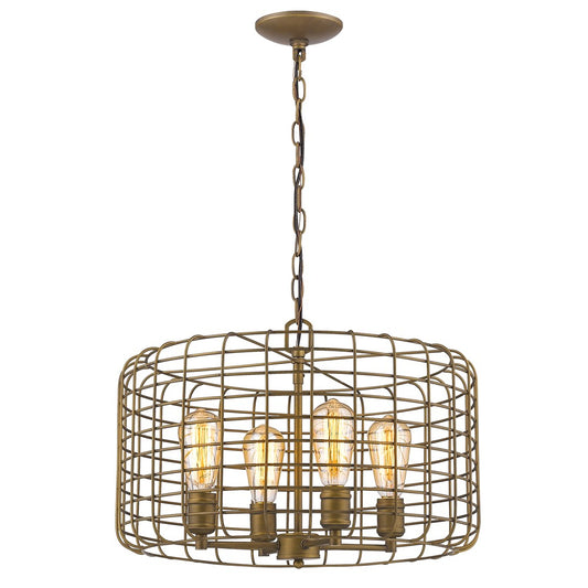 Lynden 4-Light Raw Brass Drum Pendant With Wire... Lynden 4-Light Raw Brass Drum Pendant With Wire Cage Shade By Homeroots