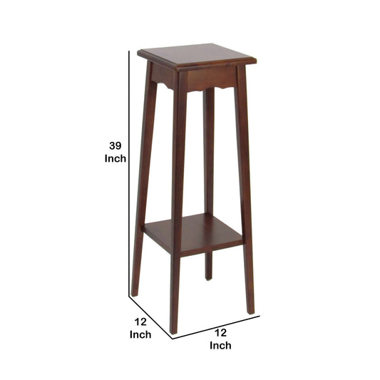39.5 Inch Plant Stand With Tapered Slanted Legs... 39.5 Inch Plant Stand With Tapered Slanted Legs And Bottom Shelf, Brown By Benzara