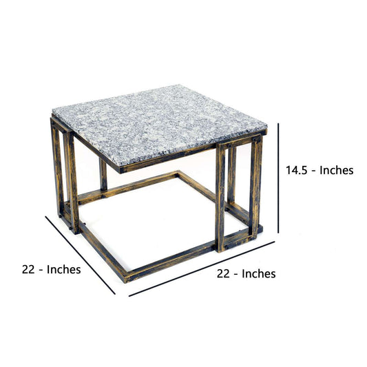 2 Tier Square Stone Top Plant Stand With Metal ... 2 Tier Square Stone Top Plant Stand With Metal Frame, Small, Black And Gray By Benzara