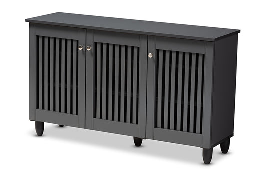 Baxton Studio Fernanda Modern and Contemporary ... Baxton Studio Fernanda Modern and Contemporary Dark Gray 3-Door Wooden Entryway Shoe Storage Wide Cabinet